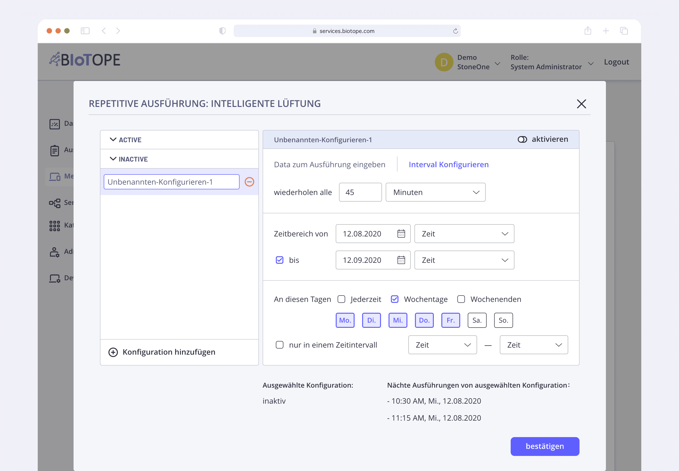 Service Repetition: Services can be executed with a single click or scheduled for recurring execution.